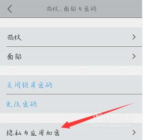 在弹出的新界面点击“隐私于应用加密”,如下图所示。