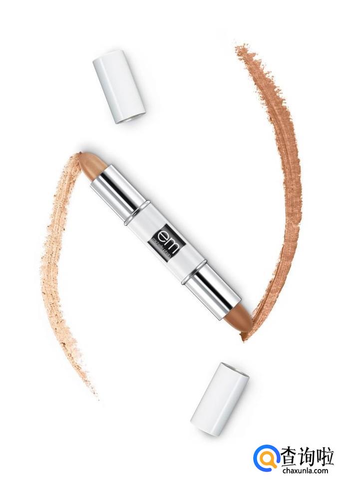 刚刚用了深色的修容棒以后我们再用浅色的修容棒来提亮我们的鼻梁,额头以及下巴,打造一个V字脸,大家还可以提亮一下我们的苹果肌,会看起来更加的自容好看。