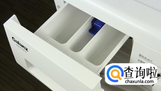 在洗衣机的左上角有一个洗涤剂分配盒,把它拉出来,倒入合适剂量的洗衣粉或者洗衣液。