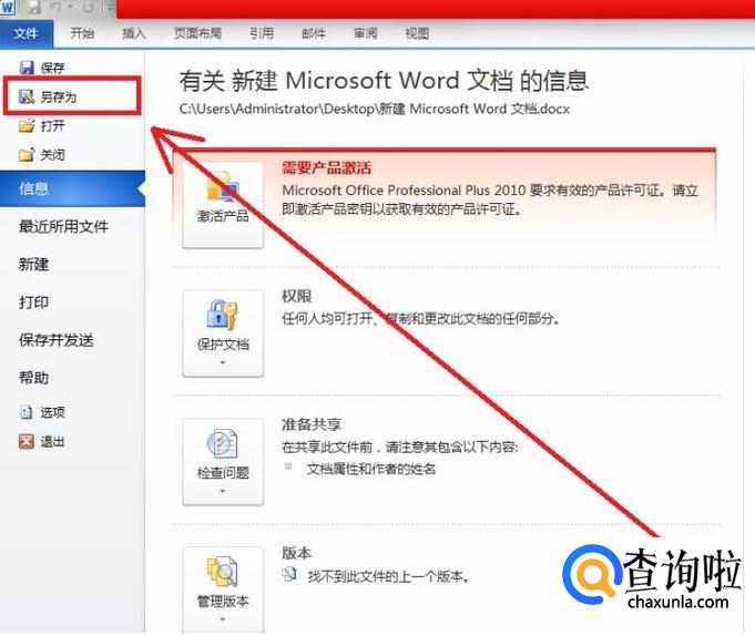 在此Word文档的文件操作菜单中,点击“另存为”选项。