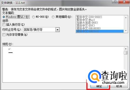 在弹出的文件转换操作界面,选择好文本编码(通常选择为Windows默认)和语言类型后,点击下方的“确定”按钮即可。