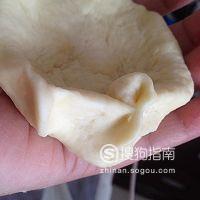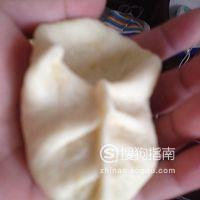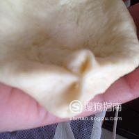 如此反复进行,赶到最后剩一点时将口捏紧即可,如图所示,柳叶饺就包好啦。
