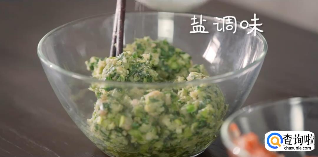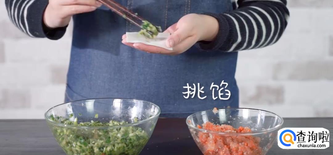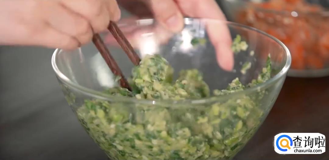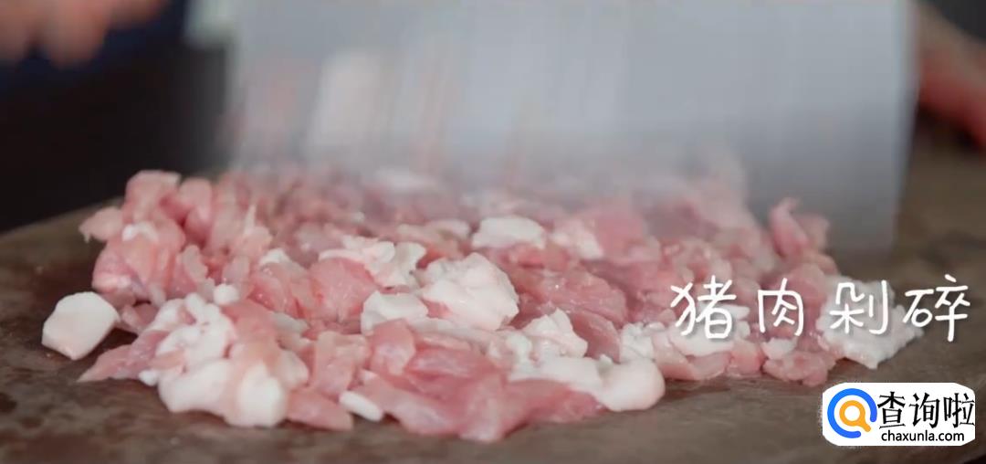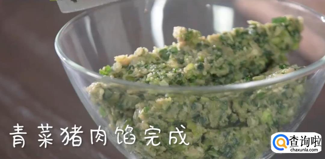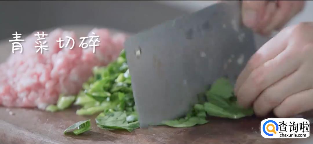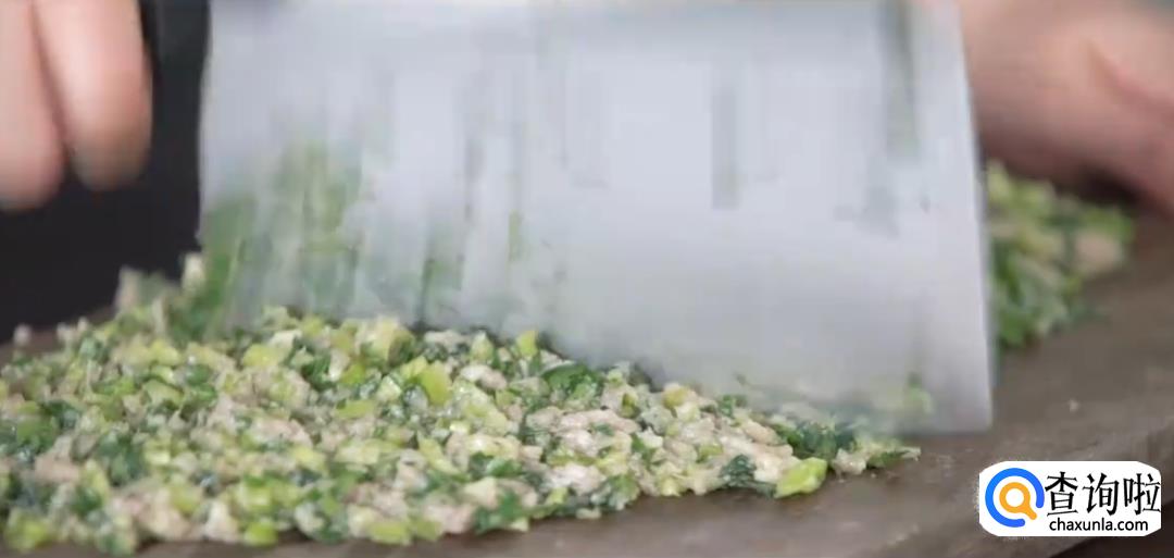 鲜肉剁碎,青菜切碎,再将鲜肉和青菜混在一起剁成肉馅。成肉馅