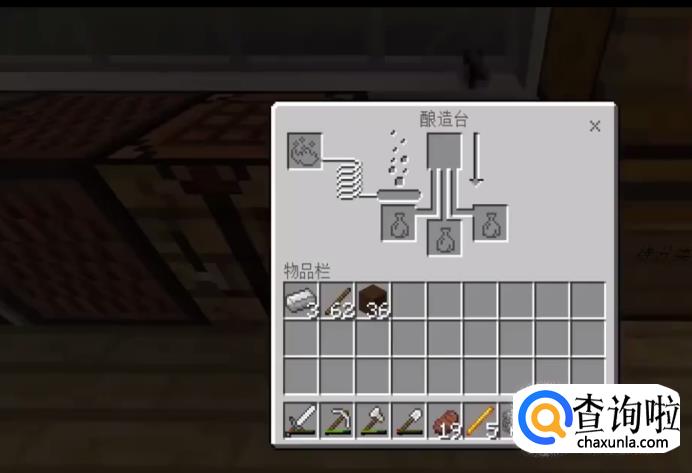 首先我们搭建一个”酿造台“——需要1根烈焰棒和3块原石。