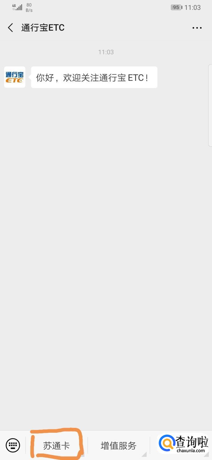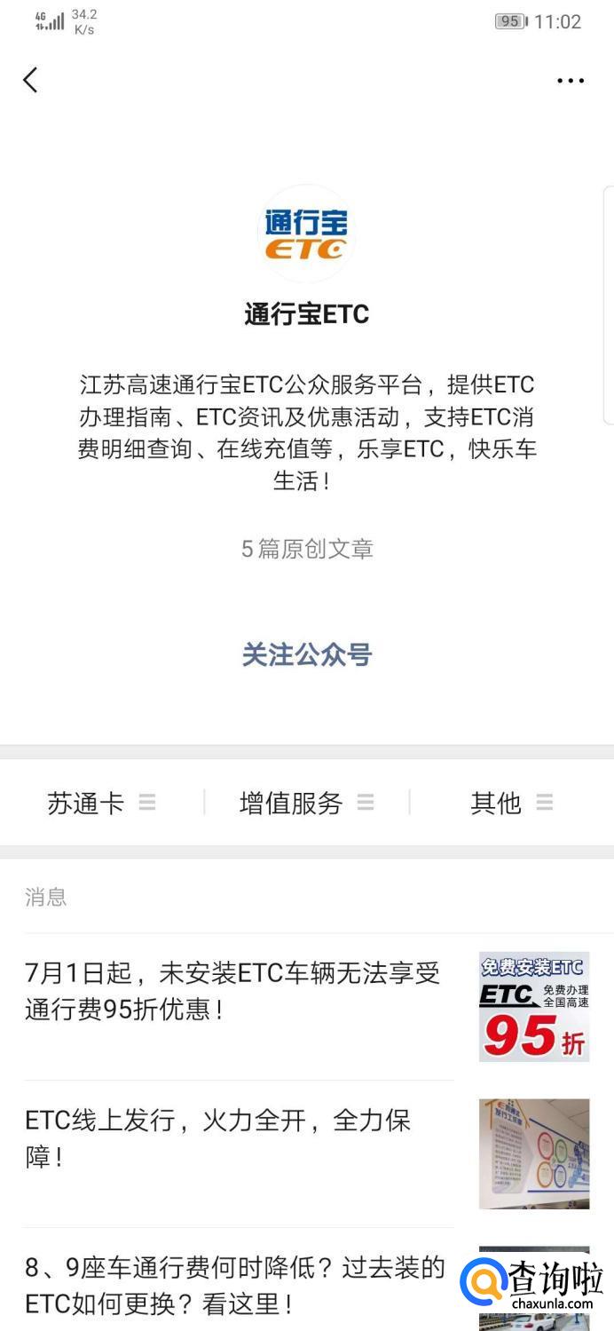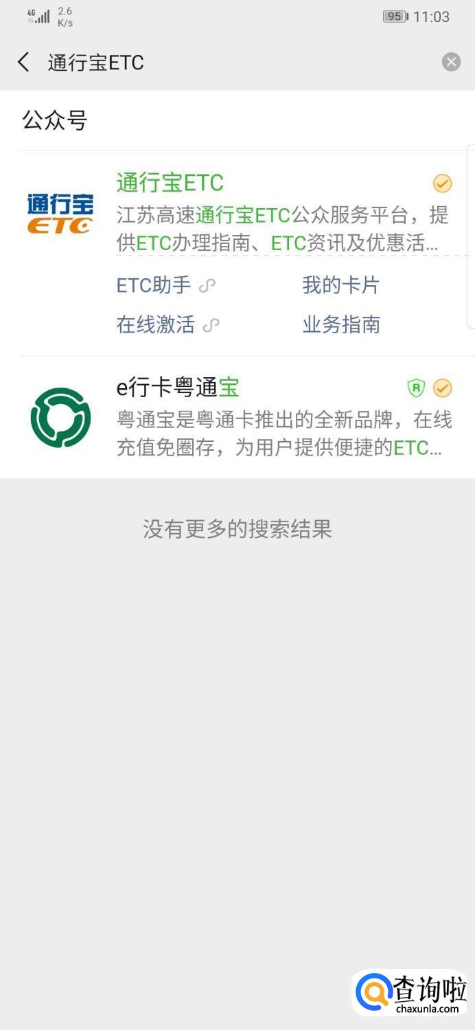 首先我们打开手机微信,搜索【通行宝ETC】公众号。