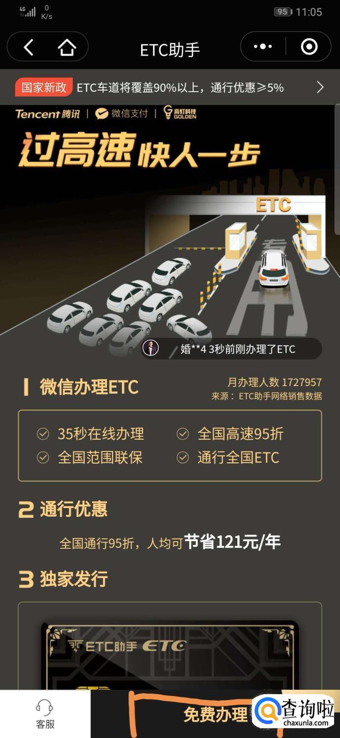点击苏通卡中的ETC助手,就会出现如下界面,再点击免费办理ETC。