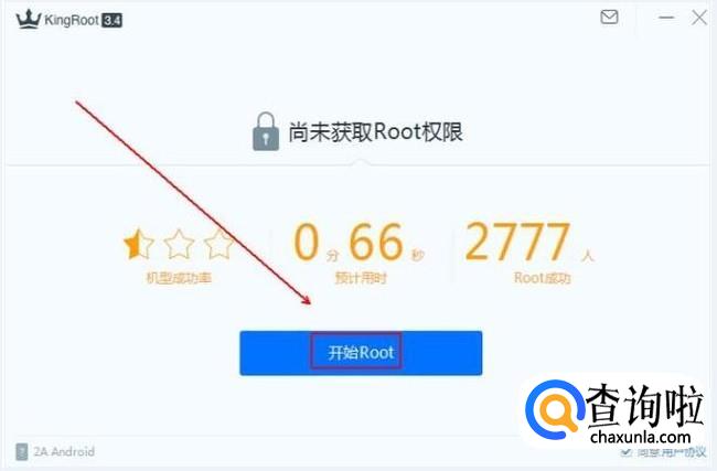 用手机数据线将手机和电脑连接,等kingroot检查到手机后,点击“开始root”选项