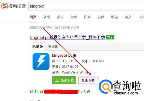 在搜狗搜索引擎中输入关键词“kingroot”