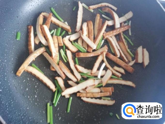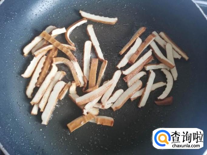 锅烧热,加入适量油,将豆干放入锅中煸炒