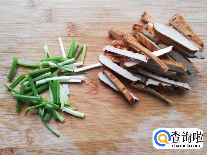 将豆干洗干净,切成丝,香葱去根,洗干净切段