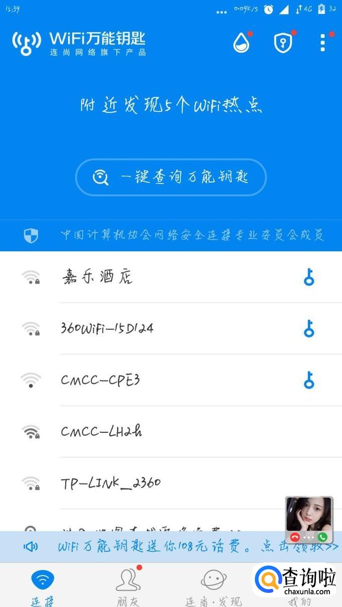 这时候我们可以看到有些热点后面有一个钥匙形状的图案,那么说明这个热点我们是可以免费连接的,点击想要连接的热点,就可以免费使用wifi了。