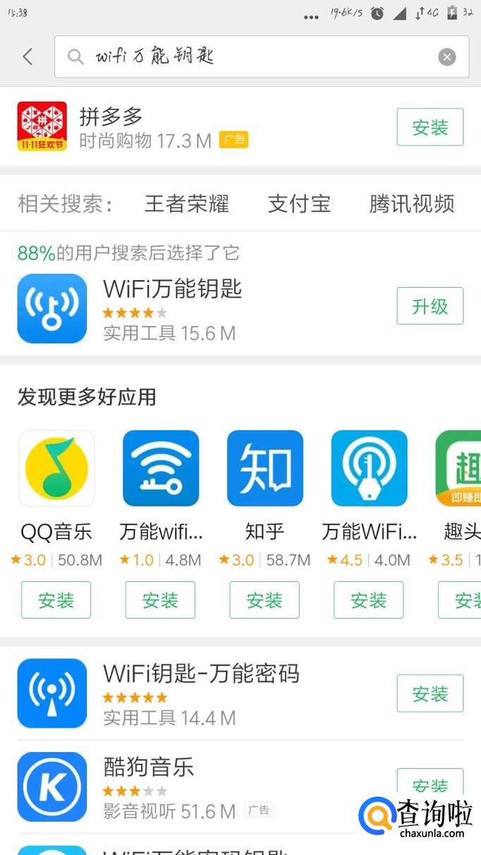 首先我们要打开手机上的“应用商店”,然后在搜索框输入“wifi万能钥匙”,点击搜索,我们就会看到有一个叫“wifi万能钥匙”的软件,点击把它下载。
