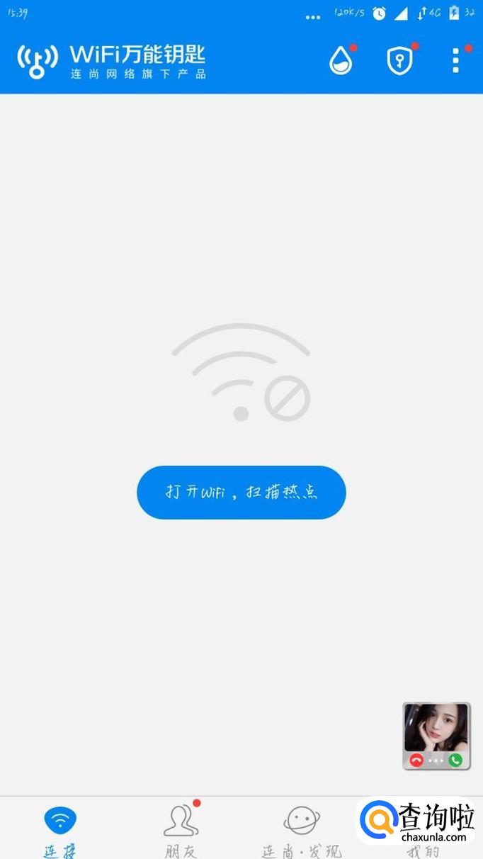 打开“wifi万能钥匙”这个软件,然后点击“打开wifi,扫描热点”,我们就可以看到附近的热点。