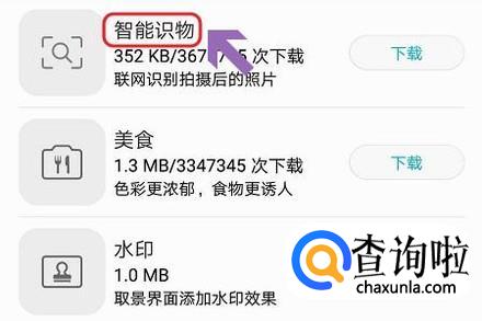 点击下载以后,即可看到“智能识物”功能了,点击右侧的“下载”选项即可,返回到刚才的模式界面,这样就能看到“智能识物”了;
