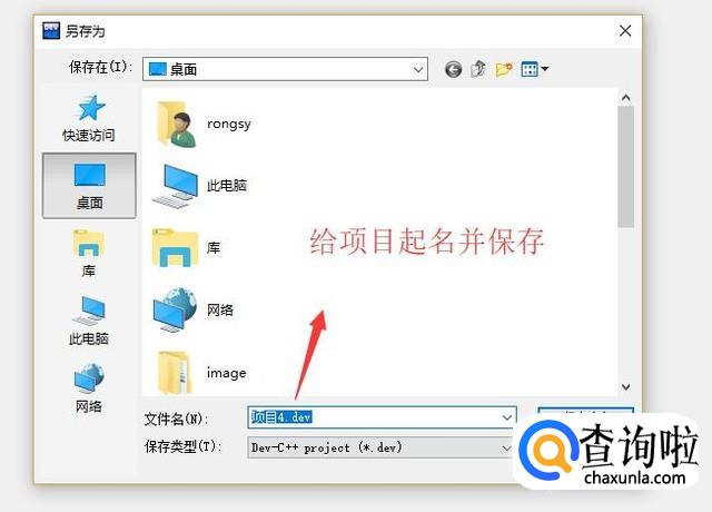 然后会弹出另存为界面,我们给项目起一个名字,选择类型为dev,如下图所示