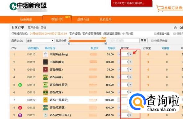 我们先在当地新商盟网上进入订烟系统,输入自己的账号密码登陆,然后进入目录订单,再开始根据供求和供用量进行选择,选完后检查一遍就提交订单即可。后续交钱,等待烟草局送烟上门。