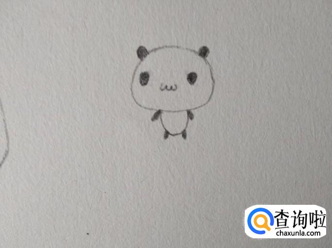 画个卡通版的小熊猫。头是一个椭圆,但是上窄下宽。眼睛黑黑大大的。耳朵涂黑,四肢涂黑。