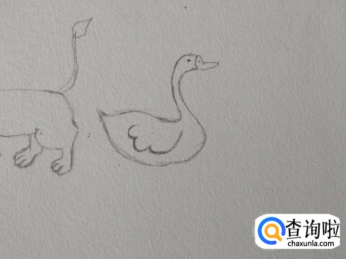 画个天鹅。先从脖子画起,注意弧度,然后画头,画嘴。再画身体,翅膀。