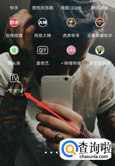 打开手机,找到芒果TV,点击并进入,如图所示。