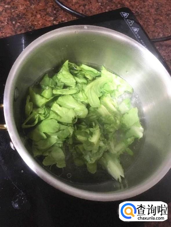 水热起泡将洗干净的茼蒿倒入