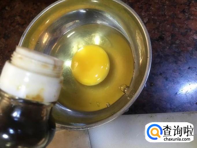 鸡蛋倒入碗中,加入少许生抽