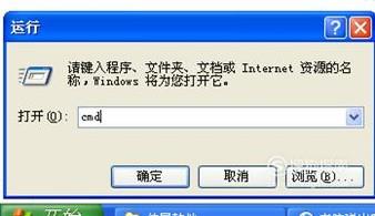 在运行对话框里输入“cmd”,回车。
