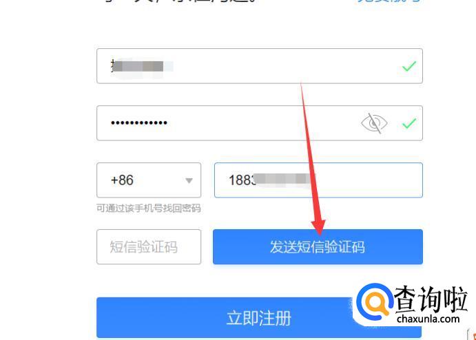 收到验证码之后,填写在图示位置,点击“立即注册”即可。