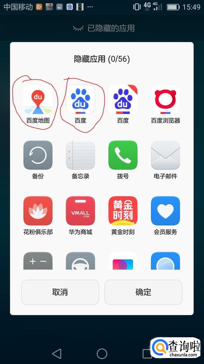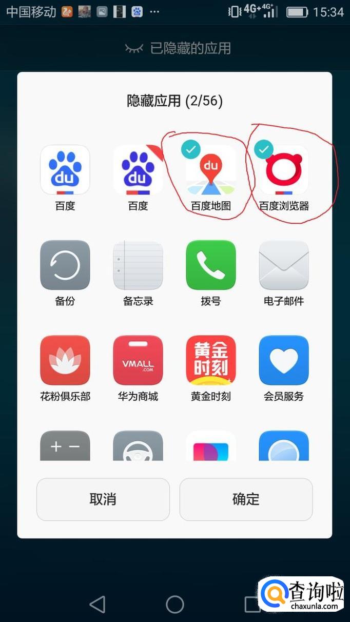 我们点击选择我们要隐藏的应用,然后我们在点右下角的确定按钮。这样就开启了隐藏功能。