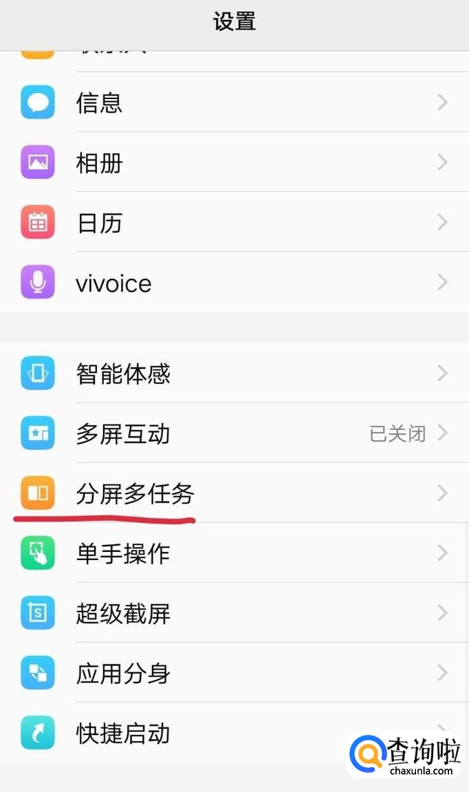 打开手机的设置,然后选择分屏多任务,如图所示。