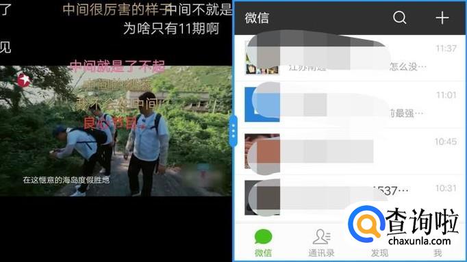 然后我们在全屏状态时就会自动开启分屏任务,比如我看电视的时候微信来消息就自动分屏了,很实用的功能!
