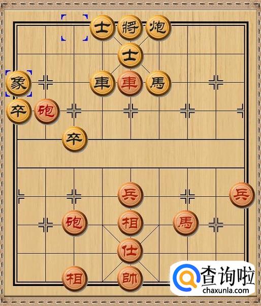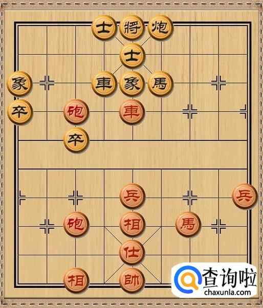 红方先行,由于红方炮在黑方右面有闷宫杀的可能,因此,红方车五进一,杀掉黑方中象。为红方闷宫杀创造条件。如图所示。