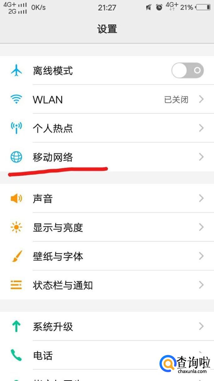 接着,点击"移动网络"。