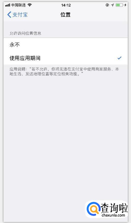 在当前页面即可以选择定位权限设置,根据你的喜好自行选择,选择好返回即可自动保存。这样你的支付宝就有定位权限啦!