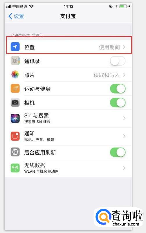 进入设置之后,往下滑动,找到支付宝APP,点击进入。