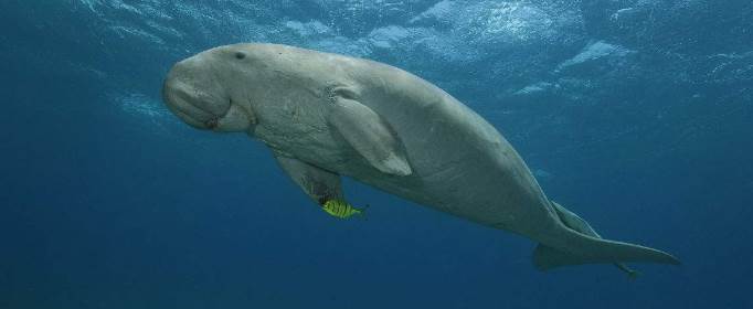 儒艮(学名:Dugong dugon),是一种海洋草食性哺乳动物。主要生活在热带浅海中,以二药藻、喜盐草等水生植物为主食。因为它需要定期浮出水面呼吸,常被认作“美人鱼”。儒艮是世界上最古老的海洋动物之一,属国家一级保护动物,也是我国的濒危物种之一。