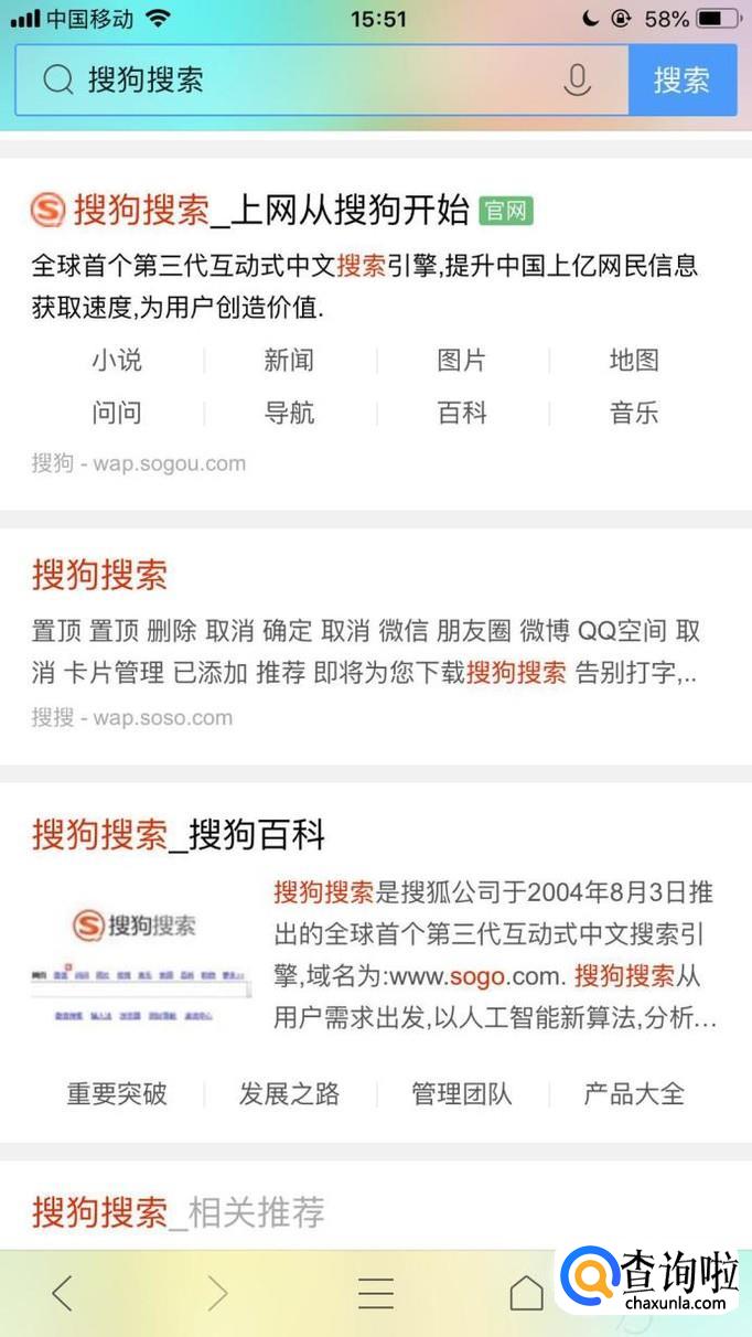 接着输入我们想要收藏的网页名称并点击搜索,如下图所示。