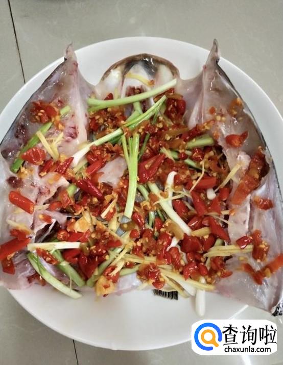 将姜蒜切片,放在鱼头上,加适量的剁椒,上火蒸约10分钟,关火后再虚蒸2分钟