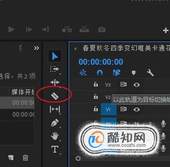 在工具箱中找到切刀工具,即可对视频进行剪辑。