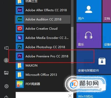 在开始程序中找到Adobe Premiere Pro CC2018,点击左键启动软件。