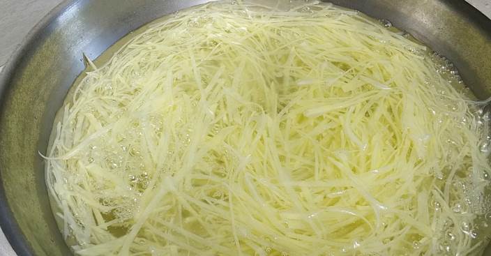 但是发了芽的和青皮的土豆即使还没发黑也不能吃的,因为它含有一种有毒的龙葵素。炒土豆丝最好的方法是现切现炒,切好之后用清水洗一下,这样炒的土豆丝好吃,营养流失的也少。