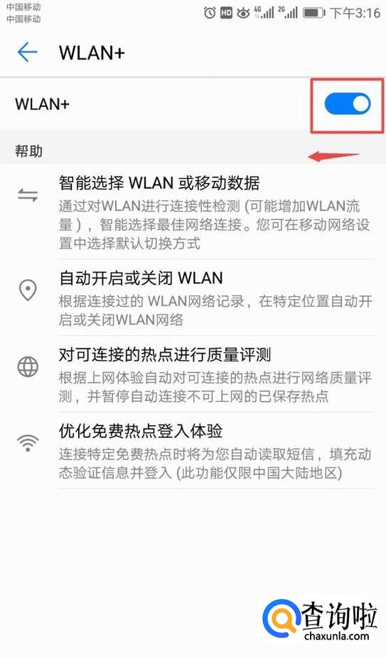 弹出的界面,我们将WLAN+的开关向左滑动关闭就可以了,这样就不会自动连接wifi了。