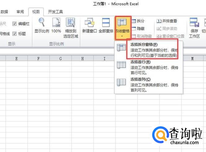 然后我们点击冻结窗口,弹出的界面,我们点击冻结拆分窗口;