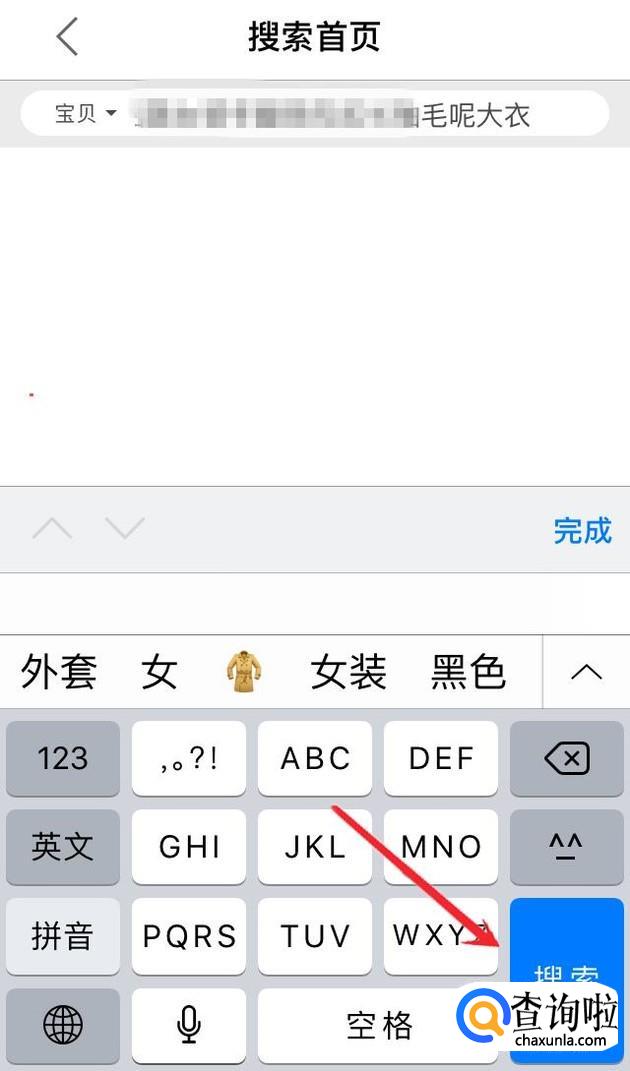 在搜索栏黏贴刚刚复制的淘宝标题,并点“搜索”。