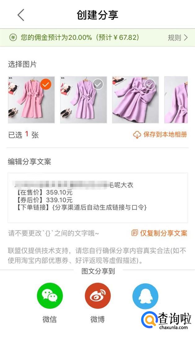 点击下方“立即分享”,跳转到下一界面,可以分享到微信、微博和QQ,这里点击“QQ”。