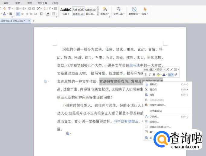 如果是对文档中的内容进行复制、粘贴等操作,则需要先选择好所要进行操作的内容。