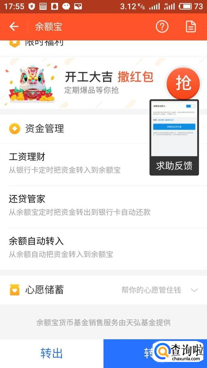 找到以后点击打开页面,打开以后开余额自动转入就可以了。
