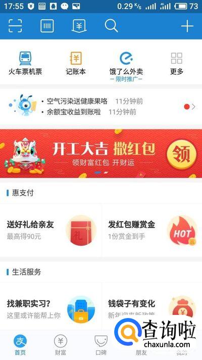 打开手机然后找到手机中的支付宝,然后打开支付宝进入首页。