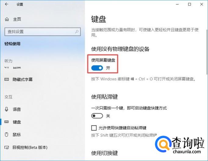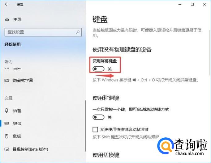 然后我们将使用屏幕键盘的开关向右滑动打开;