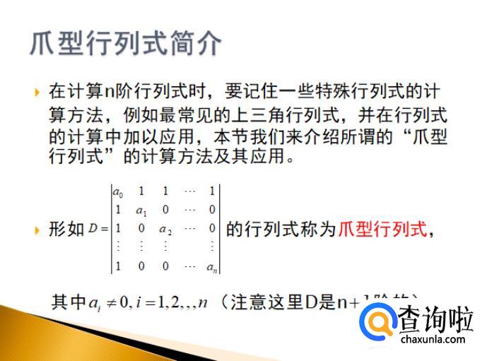 爪型行列式的计算方法及其计算公式。