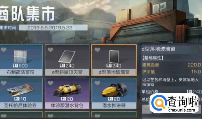 在“商队集训”中可以看见落地玻璃窗,然后点击“落地窗玻璃”。